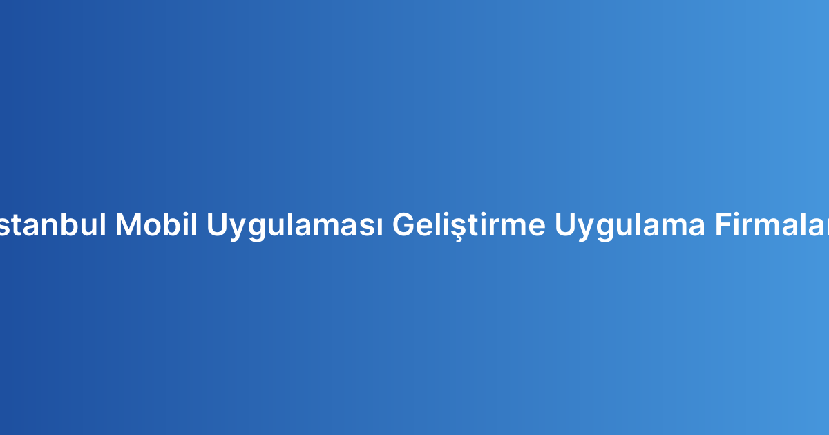 İstanbul Mobil Uygulaması Geliştirme Uygulama Firmaları