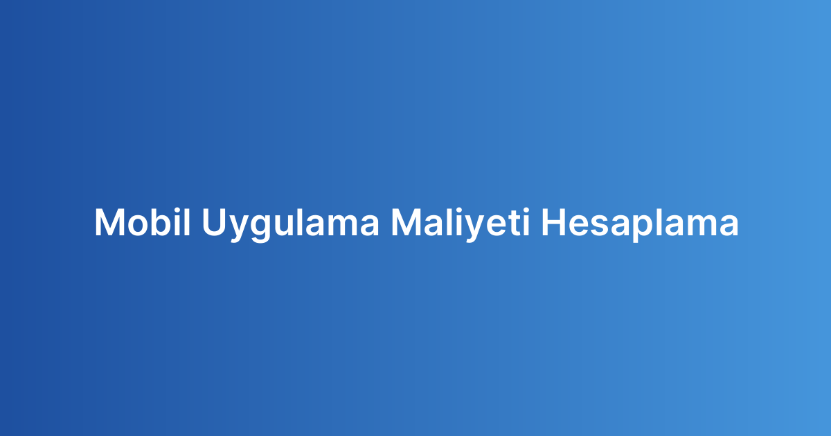 Mobil Uygulama Maliyeti Hesaplama