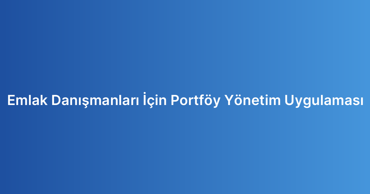 Emlak Danışmanları İçin Portföy Yönetim Uygulaması