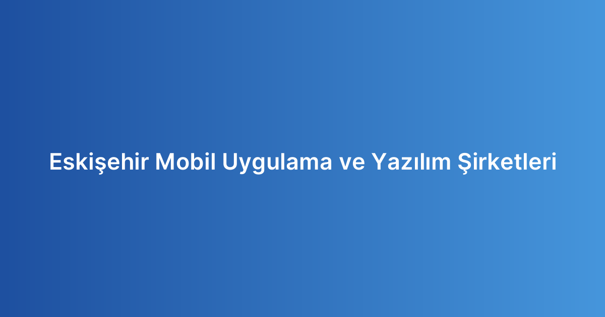 Eskişehir Mobil Uygulama ve Yazılım Şirketleri