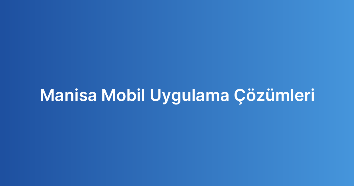 Manisa Mobil Uygulama Çözümleri